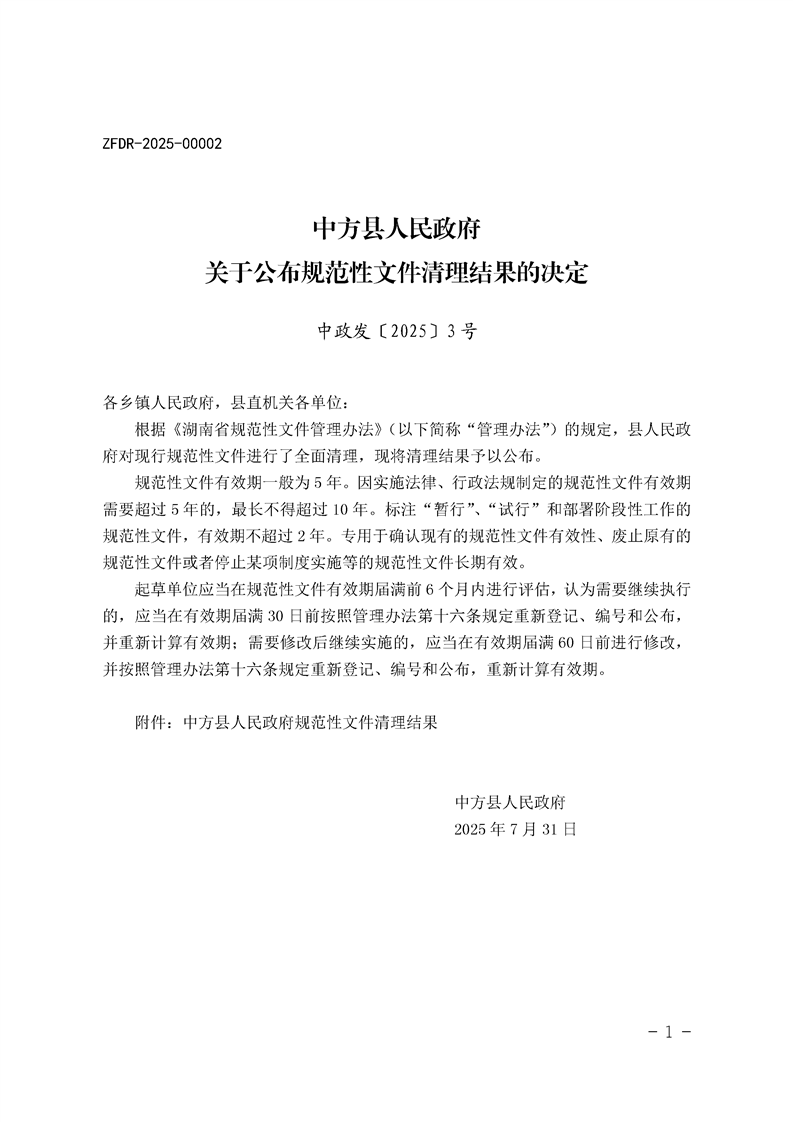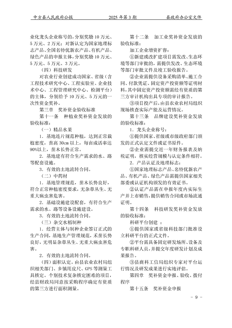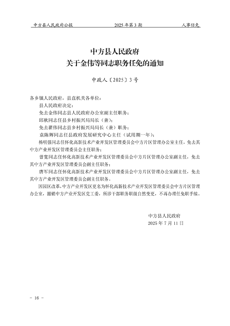 中方县人民政府公报2025年第3期