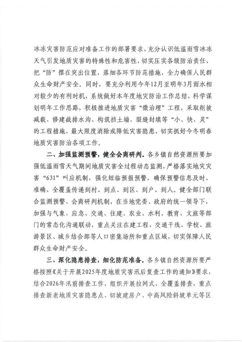 关于切实做好低温雨雪冰冻天气应对及今冬明春地质灾害防范工作的通知