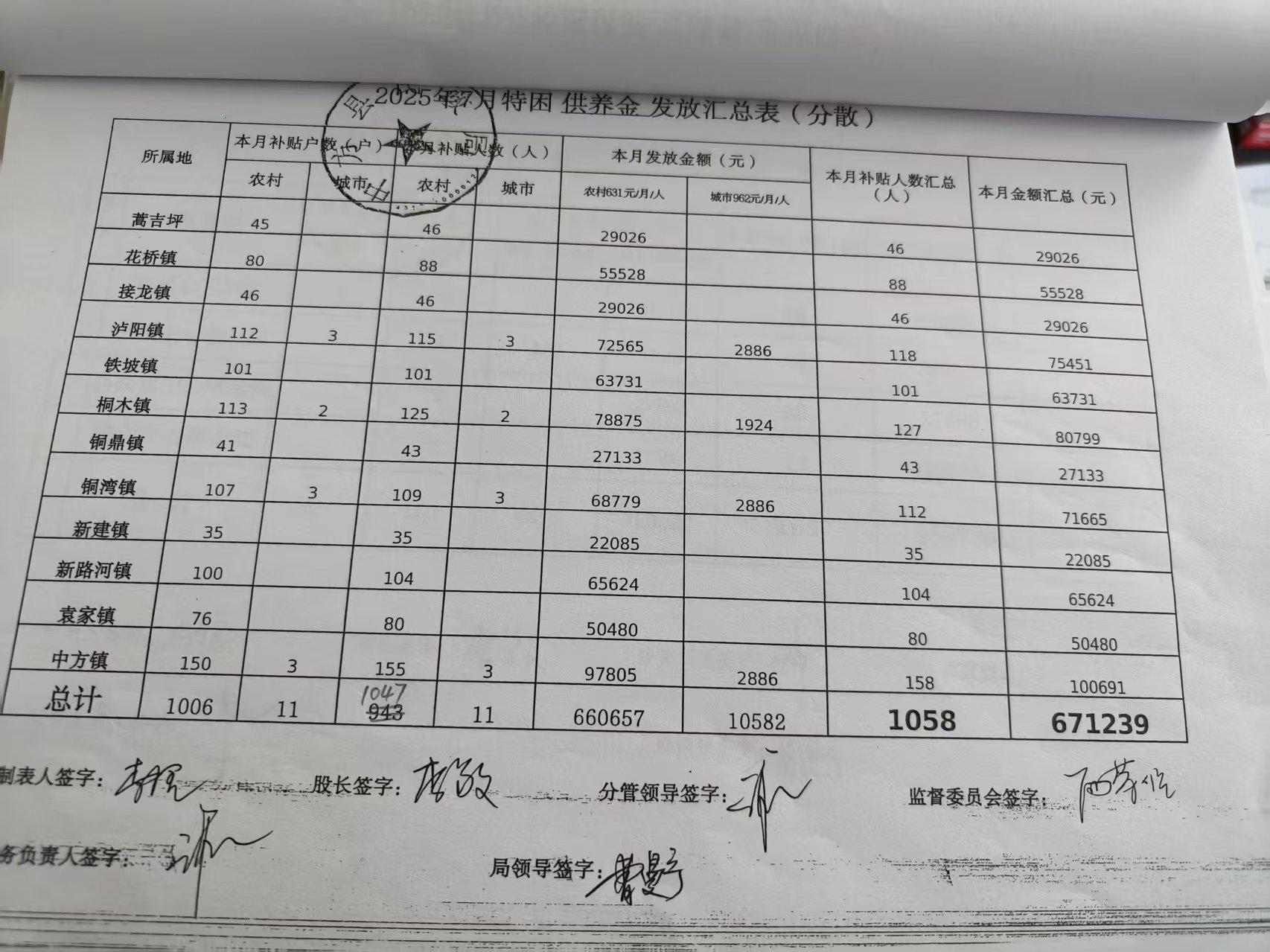 2025年7月特困人员发放表