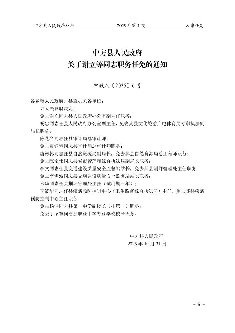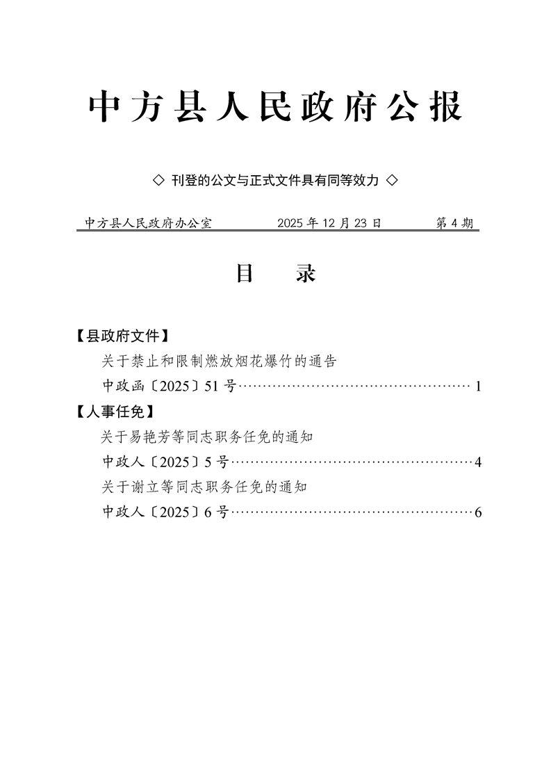 中方县人民政府公报2025年第4期