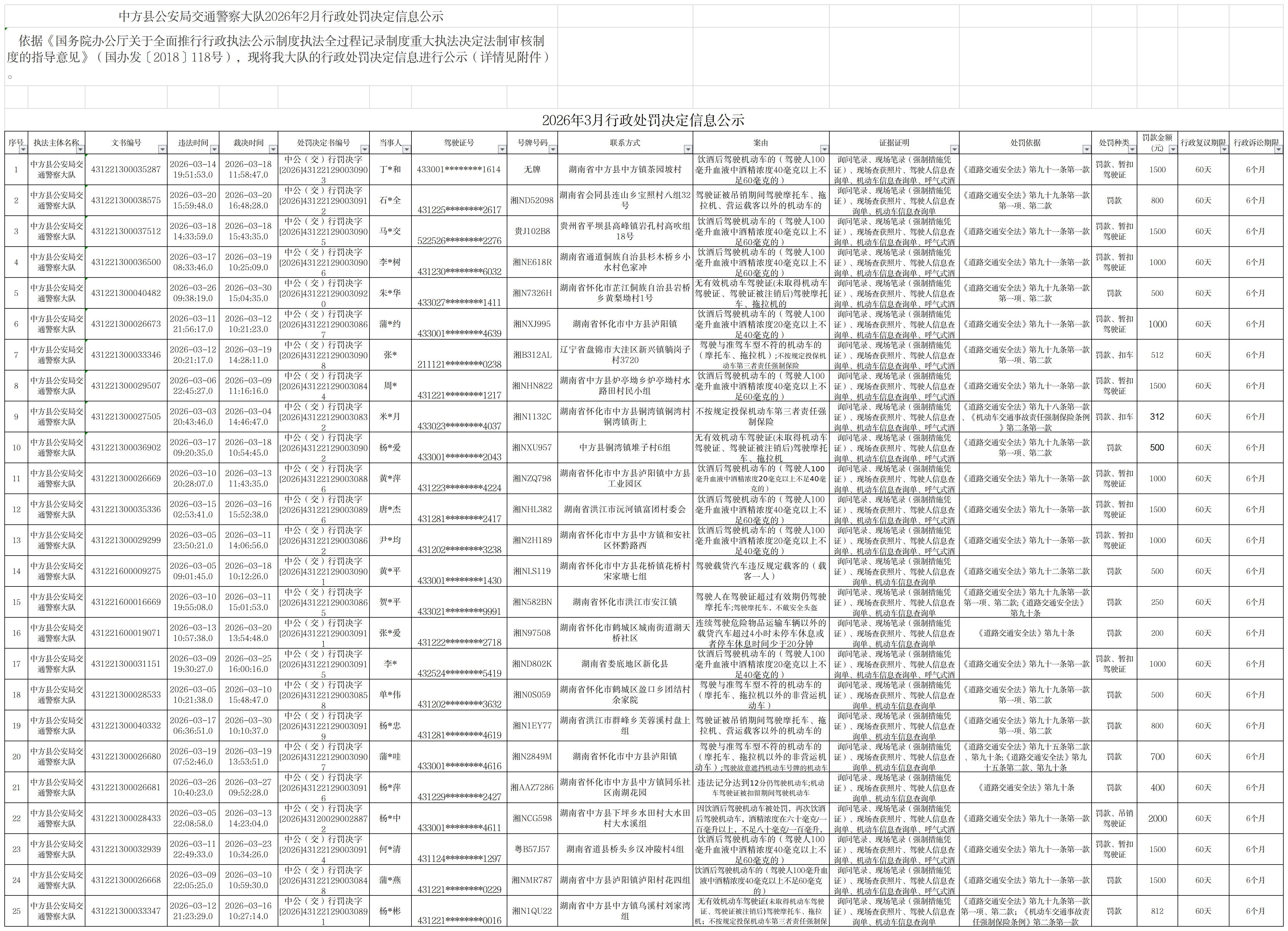 2026年3月行政处罚决定信息公示
